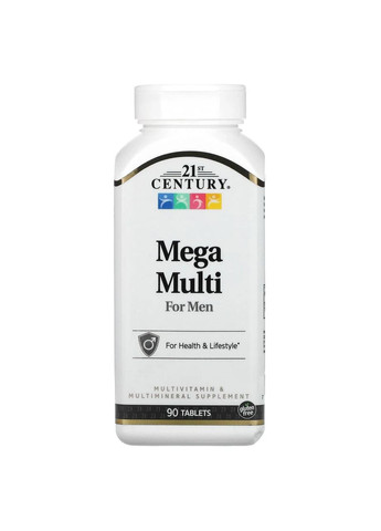 Для здоров'я та способу життя Полівітамінна та полімінеральна добавка Не містить глютену Гарантована якість - протестовано в лабораторії Полівітаміни Mega для чоловіків містять повний спектр антиоксидантів, вітамінів і мінералів, які підтримують здоров'я чоловіків. Рекомендації щодо застосування Як харчову добавку дорослим слід приймати дві (2) таблетки щодня під час їди або відповідно до призначення лікаря. Не перевищуйте рекомендоване дозування. Результати залежать від індивідуальних особливостей. Інші інгредієнти Мальтодекстрин, стеаринова кислота, гідроксипропілметилцелюлоза, целюлоза, пивні дріжджі. Містить аскорбілпальмітат, бха, бхт, кукурудзяну олію, dl-альфа-токоферол, етилцелюлозу, желатин, гуміарабік, стеарат магнію, маніт, натуральний ароматизатор ванілі, кілочок, полісорбат, полівініловий спирт, діоксид кремнію, аскорбат натрію, соєву олію, крохмаль, цукрозу, тальк, рослинну олію, олію вітаміну Е, воду. Містить молюсків (устриці) і сою. Без додавання солі. Попередження Проконсультуйтеся з лікарем перед прийомом, якщо ви вагітні, годуєте грудьми, приймаєте ліки, страждаєте від будь-якого захворювання або плануєте будь-яку медичну процедуру. При виникненні побічних ефектів припиніть вживання і зверніться до лікаря. Зберігати в недоступному для дітей місці. Не використовувати, якщо на упаковці присутні сліди розкриття або її герметичність порушена. Зберігати за кімнатної температури. Склад Розмір порції: 2 таблетки Кількість порцій: 45 Кількість на порцію % від добової потреби Вітамін А (100% Бета-Бета-Каротин) 10 000 МО 200% Вітамін С (у вигляді аскорбінової кислоти) 300 мг 500% Вітамін D3 (як холекальциферол) 200 МО 50% Вітамін Е (у вигляді d-альфа-токоферилацетату) 100 МО 333% Вітамін К (як фітонадіон) 75 мкг 94% Тіамін (тіамін мононітрат, B1) 30 мг 2000% Рибофлавін (Вітамін В2) 30 мг 1765% Ніацин (як ніацинамід) 30 мг 150% Вітамін B6 (як піридоксин HCl) 30 мг 1500% Фолієва кислота 400 мкг 100% Вітамін В12 (як ціанокобаламін) 30 мкг 500% біотин 250 мкг 83% Пантотенова кислота (як пантотенат d-кальцію) 30 мг 300% Кальцій (як цитрат кальцію і дикальцій фосфат) 210 мг 21% Йод (як йодид калію) 150 мкг 100% Магній (як оксид магнію) 100 мг 25% Цинк (як оксид цинку) 25 мг 167% Селен (як селенові дріжджі) 100 мкг 143% Мідь (як оксид міді) 2 мг 100% Марганець (як марганцевий глюконат) 5 мг 250% Хром (як піколінат хрому) 50 мкг 42% Кремнезем (як діоксид кремнію) 10 мкг ** Холін (як холін бітартрат) 10 мг ** інозит 10 мг ** Пара-амінобензойна кислота 10 мг ** Цитрусовий біофлавоноїдний комплекс 25 мг ** Екстракт Даміани (Turnera aphrodisiaca) (лист) 70 мг ** Екстракт корейського женьшеню (Panax ginseng) (корінь) 70 мг ** Вівсяна солома (Avena Sativa) (корінь) 70 мг ** Часник дезодорований (Allium sativum) (корінь) 50 мг ** Екстракт устриць 50 мг ** Бачив Пальметто (Serenoa repens) (ягода) 50 мг ** L-цистеїн HCI 50 мг ** Кропива (Urtica dioica) (листова) 30 мг ** Гарбуз (Cucurbita pepo) (насіння) 30 мг ** ДЛ-метіонін 10 мг ** Альфа-ліпоєва кислота 5 мг ** Лютеїн 500 мкг ** Лікопен 350 мкг ** ** Денне значення (DV) не встановлено.
