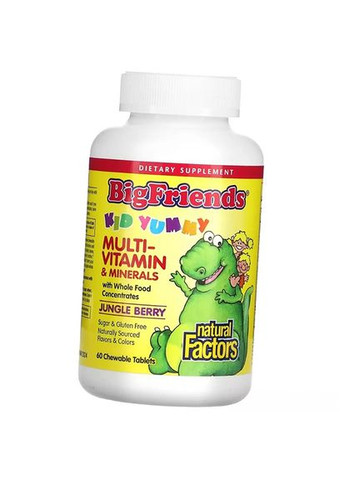 Мультивітаміни для дітей віком від 2 до 10 років Source Naturals Mega-Kid 60 ягідних жувальних цукерок Mega-Kid від Source Naturals - це комплексна мультивітамінна добавка, спеціально розроблена для дітей, що забезпечує їхній організм усіма необхідними вітамінами та мінералами. Ягідний смак робить прийом цих вітамінів приємним і легким для дітей. Корисні властивості: Підтримка зростання та розвитку: Усі необхідні вітаміни та мінерали для підтримки здорового росту та розвитку дітей. Поліпшення імунної системи: Містить вітаміни та антиоксиданти, які сприяють зміцненню імунної системи. Підвищення енергії та концентрації: Підтримка загального здоров'я та покращення рівня енергії та концентрації. Склад в одній порції (1 жувальна таблетка): Калорії 10 Усього вуглеводів 2 г Усього цукру 2 г Містить 1 г доданого цукру Вітамін A (у вигляді бета-каротину) – 900 мкг Вітамін C (у вигляді аскорбінової кислоти та аскорбату марганцю) - 100 мг Вітамін D3 (у вигляді холекальциферолу) – 5 мкг (200 МО) Вітамін E (у вигляді d-альфа токоферил сукцинату) – 10 мг Вітамін K (у вигляді фітонадіону) – 10 мкг Тіамін (вітамін B1) – 2,5 мг Рибофлавін (вітамін B2) – 2,5 мг Ніацин (у вигляді нікотинаміду) – 7 мг Вітамін B6 (у вигляді піридоксину гідрохлориду) – 2,5 мг Фолат (у вигляді фолієвої кислоти) – 340 мкг DFE (200 мкг фолієвої кислоти) Вітамін B12 (у вигляді метилкобаламіну) - 5 мкг Біотин – 75 мкг Пантотенова кислота (у вигляді D-пантотенату кальцію) – 7 мг Кальцій (у вигляді цитрату кальцію) – 20 мг Залізо (у вигляді фумарату заліза) – 3 мг Йод (у вигляді йодиду калію) – 45 мкг. Магній (у вигляді амінокислотного комплексу) – 15 мг Цинк (у вигляді цитрату цинку) – 2,5 мг Селен (у вигляді L-селенометіоніну) – 30 мкг Мідь (у вигляді цитрату міді) – 75 мкг Марганець (у вигляді аскорбату марганцю) – 1 мг Хром (у вигляді поліхрому [ChromeMate®]) - 5 мкг Калій (у вигляді цитрату калію) – 10 мг Паростки ячменю - 25 мг Комплекс цитрусових біофлавоноїдів - 15 мг Комплекс гамма-вітаміну E – 15 мг Корінь червоного буряку - 10 мг Спіруліна (Arthrospira platensis) – 10 мг L-лізину гідрохлорид - 6 мг Листя шпинату – 5 мг Сублімований горох – 5 мг Паростки пшениці - 5 мг Суміш клітковини вівсяних висівок - 5 мг Рутин – 5 мг Інозитол – 5 мг Таурін - 4 мг Гесперидин – 2,5 мг Екстракт плодів чорниці (32% антоціанозидів) – 2,5 мг Екстракт плодів гранату – 2,5 мг Кверцетин – 2,4 мг Суцвіття та стебло капусти – 1,5 мг Суцвіття та стебло брокколі - 1,5 мг Інгредієнти: Фруктоза, стеаринова кислота, натуральний ароматизатор «Малина», плоди полуниці, натуральні ароматизатори «Персик» та «Мед», діоксид кремнію, магнію стеарат, екстракт листя стевії. Містить пшеницю та сою. Рекомендації щодо застосування Ділям від 4 років по 1 жувальні таблетки на день. Для дітей віком до 4 років: розламайте вафлі на невеликі шматочки. Не призначено для використання дітьми віком до 2 років.