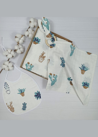 До букету входять: Муслінова плед-пелюшка 120х120 Плед з в'язаного полотна 90×90 Дві непромокаючі багаторазові пелюшки 50х80 Непромокаюча багаторазова пелюшка 80х100 Непромокаюча багаторазова пелюшка 45×75 Дві м'які та ніжні фланелеві пелюшки 80х100 Комфортер "Ведмежа" ЕКО гризунок Шурхітливі вушка Брязкальце "Ведмежа" Тримач для пустушок, гризунів, іграшок тощо Три пари шкарпеток для крихітки Ніблер