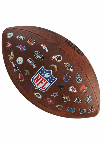 Wilson є єдиним брендом, яким дозволено використовувати логотип NFL. Футбольний логотип команди NFL 32 містить всі 32 команди в повнокольорових логотипах, завдяки чому м'яч виділяється з-поміж інших. Це високоефективний композитний м’яч, але він має вінтажний вигляд, він доступний в одному розмірі – офіційному. Ідеально підходить для розважального американського футболу або як подарунок вболівальникам американського футболу. Офіційний (розмір 9).