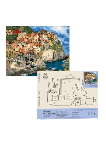 Картина за номерами – це чудовий подарунок, гарний сувенір та корисне придбання для творчого дозвілля, адже результат заняття таким хобі – користь для здоров'я (відпочинок та релакс). Набір для малювання за номерами включає: полотно з бавовни з пронумерованим контурним малюнком на дерев'яній рамці; комплект пронумерованих акрилових фарб яскравих, стійких кольорів на водній основі з нетоксичних компонентів. Усі необхідні фарби вже в комплекті та не вимагають змішування; пензлики з еластичного нейлонового волокна; контрольний лист; графічна схема.
