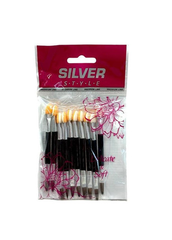 Аплікатор для макіяжу Silver Style SA-14 чорний з тонким пензликом 10 шт 0149 9914 Якісні інструменти для макіяжу — незамінні в б'юті-арсеналі кожної сучасної дівчини, які допомагають у створенні бездоганних повсякденних і вечірніх образів. Чудовими помічниками в підкресленні краси очей стануть аплікатори для тіней двосторонні SA-14 бренда Silver Style. Складається набір з 10 аксесуарів чорно-сріблястих тонів. Кожен аплікатор з одного боку оснащений куполоподібної поролоновою насадкою, за допомогою якої рівномірно нанести тіні не складе труднощів. Розташований з іншого боку інструмент пензель з м'якого синтетичного ворсу дозволить розтушувати декоративні засоби, створювати плавні кольорові переходи. Завдяки високоякісним матеріалам вироби не викликають подразнення при контакті з ніжною шкірою повік, а також легко очищаються і не втрачають свій презентабельний вигляд протягом тривалого часу. Ми працюємо на ринку косметики більше 20 років. Наша компанія являється ексклюзивним дистрибутором низки лінійок аксесуарів для краси таких брендів: Christsan, Hollow Comb, La Rosa, MIRROR, Panda, Q.P.I. Professional, RIGE, Silver Style, Stark, ZANGEAGER,ZIGER, Zinger, PURA, Nitrylex Профістиль, SUPERBRUSH плюс та інших. Маємо широкий асортимент: пензлів та спонжей, гребінців та щіточок для фарбування волосся, аксесуарів для волосся, терок та пемз, ножиців, кусачок та кліпсерів, пилочок, пінцетів та інших професійних засобів. Ми пропонуємо продукцію з урахуванням вишуканих смаків і вподобань як українського так і європейського споживача. Асортимент продукції постійно оновлюється у руслі тенденцій світової моди, інноваційних ідей та нових товарів, творчості та професіоналізму. Аксесуари для краси оптом, для продажу в магазинах косметики, задовільнять найвибагливішого споживача! Аксесуари та інструменти для перукарень і салонів краси зроблять ваших клієнтів неперевершеними! Аксесуари для краси для використання в домашніх умовах. Ми організуємо стабільні поставки аксесуарів для краси в найкоротші строки! Приєднуйтесь до нашої родини задоволених клієнтів!