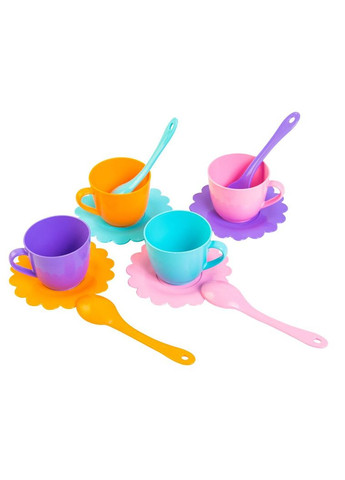 Іграшка "Кухонний набір 4". У наборі 38 елементів (у т. ч. кавник і дощечка для нарізки) виконаних в оригінальній кольоровій гаммі модельної лінійки Кухонних наборів ТехноК. Комплектація: сковорода, каструля, сотейник, цукорниця з кришкою, кавник з кришкою, дощечка для нарізки, черпак, шумівка, вилка велика, лопатка, кришка - 2 шт, тарілка - 4 шт, блюдце - 4 шт., чашка - 4 шт., ложечка - 4 шт ., виделка - 4 шт., ніж - 4 шт.