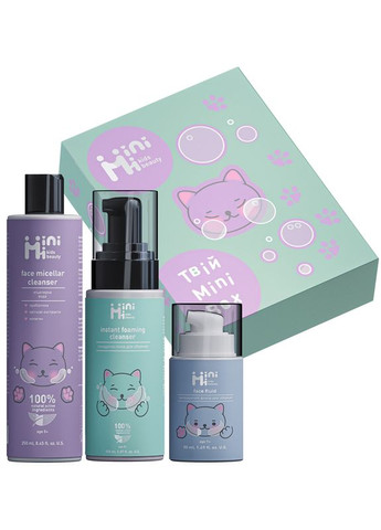 Набір для обличчя Mini Box MiniMi — це турботливий догляд у компактному боксі з милим кошеням. Всередині — три засоби, які забезпечують базовий догляд: очищення, тонізацію та зволоження. Кожен продукт розроблений спеціально для дитячої та підліткової шкіри з урахуванням її особливостей. Натуральні формули без агресивних компонентів дбайливо очищують, зволожують та захищають, не викликаючи подразнень. Завдяки MiniMi щоденна рутина перетворюється на веселий ритуал краси. Переваги Міцелярна вода ніжно очищує та тонізує без липкого ефекту Пінка мʼяко видаляє забруднення та робить шкіру шовковистою Флюїд з алое вера та пребіотиками зволожує та заспокоює шкіру Підходить для щоденного використання навіть для найчутливішої шкіри Натуральний склад підтримує мікробіом та захищає від подразнень Компактний формат чудово підходить для подарунку або в дорогу Спосіб застосування: Очистіть шкіру пінкою для вмивання. Протріть обличчя міцелярною водичкою для тонізації. Нанесіть зволожувальний флюїд легкими масажними рухами. Використовуйте щодня вранці та ввечері для ніжного догляду.