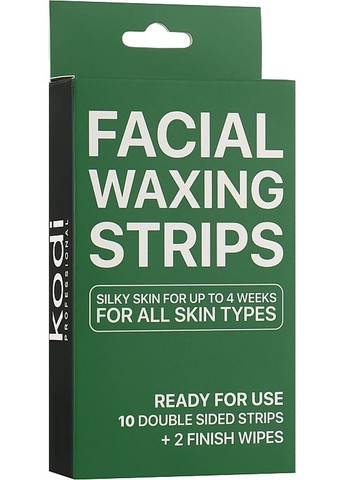 Kodi Professional - це найвідоміший бренд, який займається виробництвом професійної nail- і б'юті-продукції, яка вирізняється високими стандартами якості. Допомогти впоратися з небажаним волоссям на обличчі покликані ці воскові смужки. Вони забезпечують ефективне видалення волосся, гарантуючи гладкість і шовковистість шкірного покриву. Особливості Kodi Professional Facial Waxing Strips: - в наборі 10 смужок і 2 спеціальні серветки для обробки епідермісу після депіляції;- підходять для зони брів, підборіддя і області над верхньою губою;- щільно прилягають і ефективно усувають навіть короткі і жорсткі волосинки;- серветки додатково очищають і заспокоюють шкірний покрив, запобігаючи почервонінню і дискомфорту;- ефект бездоганної гладкості зберігається до 4 тижнів;- підходять для домашньої і салонної експлуатації.