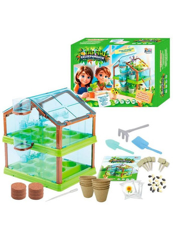 Набір дитячий Ботанічні ексерименти. Почни уроки садівництва та фермерської майстерності разом з нами й створюй свій особистий маленький сад!Особливості набору:- Прозорий бокс для вирощування рослин;- 6 пакетиків насіння;- 12 брикетів ґрунту;- 12 табличок для позначення рослин;- Стаканчики для висаджування;- Садові інструменти;- Ілюстрована інструкція з місцем для записів спостережень;- Ґрунт пройшов попередню дезінфекцію при високій температурі.