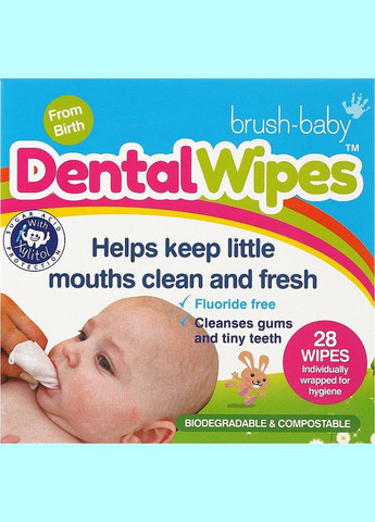 Одноразові дитячі дентальні серветки від бренда Brush-Baby – своєрідна альтернатива класичній гігієні, адаптована до потреб найменших користувачів. Очищуючи ротову порожнину, DentalWipes дають змогу позбутися молочного осаду, патогенних мікроорганізмів і бактерій, що можуть шкодити формуванню емалі. Ці вироби підходять для роботи з молочними зубами, тому їхній віковий діапазон коливається аж до 16 місяців. Крім того, вони просочені ксилітом – компонентом, що позитивно впливає на м’які тканини та слизову оболонку, зменшуючи чутливість. Особливості одноразових дитячих дентальних серветок DentalWipes від Brush-Baby: - в наборі – 28 гладеньких і приємних на дотик серветок з індивідуальним пакованням;- пакетики можна попередньо охолоджувати, щоб зменшити дискомфорт малечі;- ідеальний варіант знеболення під час прорізування зубів;- адаптовані спеціально до догляду за ротовою порожниною новонароджених від 0 до 16 місяців;- не шкодять ні м’яким тканинам, ні слизовій оболонці;- додавання ксиліту дбає про мікрофлору ротової порожнини;- очищують її від молочного осаду після годування;- гігієнічні та стерильні;- дають змогу позбавити ясна нальоту;- підходять для догляду за молочними зубами.