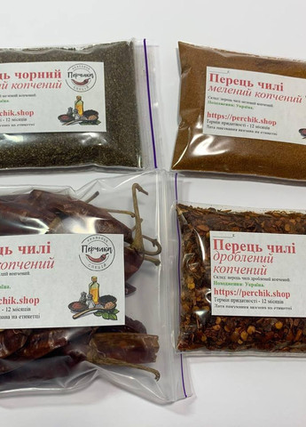 До складу набору входять: - перець чорний мелений копчений - перець чилі мелений копчений - перець чилі стручок копчений - перець чилі подрібнений копчений Копчені перці - це унікальне доповнення до кулінарних творінь, що надають стравам особливий аромат та смак. Їх використання дозволяє створити різноманітність у текстурі та смаку, перетворюючи звичайні рецепти. Варіанти використання копчених перців: Маринади та приправи: Додавання копчених перців у маринади надасть стравам димного смаку. Це ідеально для м'яса, риби та овочів. Соуси та супи: Копчені перці посилять смак та аромат соусів та супів, надаючи їм глибини та складності смаку. Приготування на грилі: Посипаючи копчені перці перед приготуванням на грилі, ви додасте унікальний димний аромат страві. Печиво та хліб: Внесіть несподіваний елемент, додавши копчені перці у випічку, щоб дати цікавіший смак та аромат. Дозування: Почніть з невеликої кількості, поступово додаючи копчені перці, щоб досягти бажаного смаку. Сумісність: Враховуйте сумісність копчених перців з іншими приправами, щоб досягти гармонійного балансу у блюді.