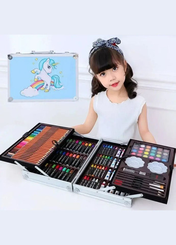 Він має 145 предметів на всі випадки: кілька різновидів олівців, фломастери, фарби, дитина зможе спробувати всі стилі промальовування, водночас ви не витратите зайві гроші. У комплекті Ви знайдете все, що потрібно для «червоної творчості»: фарби, олівці, фломастери та інші дрібні аксесуари. Усі предмети зібрані в спеціальному кейсі, який легко розкладається . Особливості: допомагає реалізувати будь-які творчі художні задуми; Кожен аксесуар в окремій комірці — нічого не загубиться; Величезна палітра кольорів і відтінків для найвишуканіших робіт; Мінімум місця в складеному вигляді; зручно брати в подорож; Всі зовнішні елементи декору та предмети для малювання виготовлені з якісних матеріалів. ; Чудовий подарунок для будь-якого свята. Комплектація: Олійні фарби 24 шт. Пастель 24 шт. Фломастери 33 шт. Кольорові олівці 28 шт. Акварельні фарби 24 шт. Пензлі 4 шт. Контейнери для квітів 2 шт. Прості олівці 2 шт. Замішаний гумка Гумка Точило Кейс