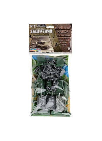 Солдатики "Захисник" №1. З таким ігровим набором відважних солдатів, потужної військової техніки та необхідного спорядження можна сміливо організувати цілу переможну військову кампанію! Танки різних модифікацій, радіостанції, снаряди і навіть вертольоти - все деталі набору виготовлені з максимальною точністю і увагою до найдрібніших деталей, фігурки солдатів в динамічних позах гранично точно передають емоції та дії в умовах справжнього бою. Набір "Захисник" стане в нагоді дитині для гри в домашніх умовах, але його можна сміливо використовувати і в вуличних баталіях з друзями. Пластик, з якого виготовлені деталі набору високої якості, міцний і довговічний - всі випробування піском, водою, вітром і палючим сонцем витримає гідно. Набір рекомендований для дітей від 3-х років. У комплекті: солдатики (18 дет.), Радіостаніція (2 дет.), Вертоліт (2 дет.), Танк (6 дет.), Бомба (2 дет.), Карта Упаковка: пакет ПВХ.