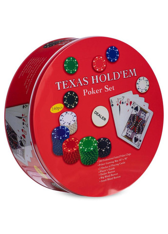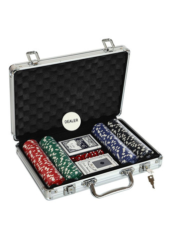 Універсальна настільна гра NP25712-2 Покер, рекомендована для дітей старше 10-ти років, поєднує в собі продумане наповнення, якісне виготовлення та стильний дизайн. Дитячий набір, укомплектований усім необхідним приладдям, включаючи 200 фішок зі зручною підставкою для зберігання, сукно і дві колоди карт, стане відмінним подарунком як для дівчинки, так і для хлопчика. граючи в покер, Дитина розвиває уяву, вчитися приймати самостійні рішення, тренує дрібну моторику, уважність, кмітливість і асоціативне мислення. Оригінальне оформлення з компактною, комфортною для транспортування і зберігання коробочкою, виконаної з металу, яка надійно закривається кришкою, робить цей набір прекрасним подарунком для будь-якого свята. Гра в покер сподобається не тільки дітям, а й дорослим, стане чудовим приводом, щоб провести час з користю в колі друзів. У цьому наборі 2 запаковані колоди покерних карт серії BCG No.92 Extra Selected Club Special ( карт бренду Bee), вироблені в Китаї. Це класична колода для гри в покер на любительському та напівпрофесійному рівні. Карти цієї серії виконані з якісного паперу по стандарту USPCC із захисним покриттям Cambric Finish, що є аналогом ламінації. Сорочка – класична безрамкова сітка, розмір мастей Jumbo Index P – збільшений.