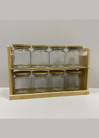 Набір ємностей для спецій на дерев'янній підставці 8 шт по 250 мл Vittora VT-8904-8 Характеристика: Вид: Ємність Тип постачання: Набір Призначення: Для спецій Матеріал: ємності - скло/дерево Матеріал підставки: Дерево Кількість в наборі: 8 шт Об'єм: 250 мл Висота: 22 см Довжина: 35 см Ширина: 10 см Розмір: ємності d - 7.2 см, дна - 8 см, h -9,7 см