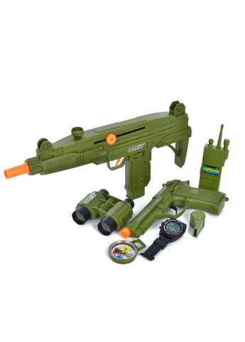 Підготуйте юного бійця до захопливих місій та пригод із Набором військового спорядження! Цей комплект надає все необхідне для реалістичної сюжетно-рольової гри, стимулюючи фантазію та командний дух. Ключові елементи набору: Автомат (Трещітка): Основна зброя, довжиною приблизно 37 см. Має вбудований механізм-тріскачку, який імітує звук стрільби без використання батарейок, додаючи динаміки у гру. Додаткова зброя: Пістолет/Револьвер для ближнього бою або як допоміжна зброя. Спорядження: Комплект містить важливі предмети для повного образу воїна: Жилет: Ігровий військовий жилет, який допомагає дитині відчути себе частиною спецзагону. Рація: Іграшковий засіб зв'язку (є муляжем), необхідний для координації дій та командних ігор. Переваги для розвитку: Рольова гра: Набір ідеальний для створення сценаріїв спецоперацій, розвиваючи уяву та наслідування дорослих. Командні навички: Заохочує гру з друзями, розвиваючи вміння співпрацювати та розподіляти ролі. Фізична активність: Стимулює активну гру, біг та рух.