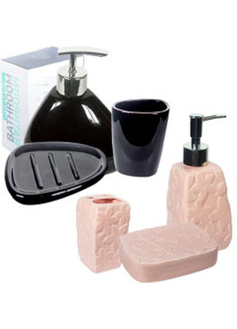 Набір для ванної кімнати 4 предмети У набір входить: - мильниця - диспансер для мила 300мл - склянка підставка 350 мл - підставка для зубних щіток Матеріал: кераміка Виробник: Китай