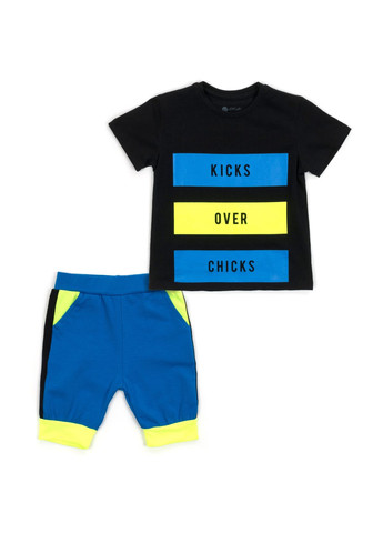 U0437867 Зріст: 92 см, 98 см, 104 см, 116 см Тип: з футболкою, з бриджами Стать дитини: для хлопчика Вік: 3 - 4 роки Сезон: літо Склад матеріалу: 95% бавовна, 5% лайкра Колір: синій, чорний, салатовий Візерунок: без малюнка Застібка: без застібки Декорування: принтовий малюнок Виробник: H.A Модель: футболка з бриджами Гарантія, міс: 0 Бренд: H.A Стильний комплект "Kicks Over Chicks" для хлопчика Чудовий модний комплект у спортивному стилі з якісного турецького трикотажу на основі бавовни для стильного модника: футболка та бриджі на манжетах. Трикотаж дуже приємний на дотик – гладкий та м'який. VIP – якість!. Футболка прямого крою з круглою горловиною та вшивними рукавами, гладко-чорного кольору. Прикрашена спереду дуже ефектними яскравими принтовими смугами неоновими з написами. Бриджі прямі, дуже модні, на манжетах, з двома прорізними кишенями. Довжиною трохи нижче колін. У поясі під гумку, Пояс та манжети – трикотажні. Виконані у шикарному поєднанні чорного, неоново-салатового та кольору електрик. Виглядає дуже модно і стильно!