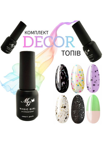 Набір топів з ефектом Magic Girl 6шт по 5мл Ми створили невеликий СЕТ з товарами об'ємом 5мл, щоб ви могли оцінити якість матеріалу. Усі позиції, що входять у набір, можна придбати у великих обсягах. З ними твій манікюр буде різноманітним як ніколи 🤘🏻 У комплекті входять топ: - TOP Light - світловідбивний - TOP Crush - ефект биті скло - TOP GLine - з галографічною стружкою - TOP Light Night - люмінісцентний топ, світить у темряві. - TOP Gold Diamond - гдянцевий із золотою потоллю - TOP Silver Matte - матовий із срібною поталлю. Об'єм 5 мл.