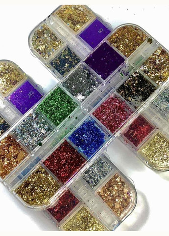 Пластівці Юккі набір 12 кольорів Втирка Юкі - це невеликі блискучі пластівці, якими прикрашають нігтики поверх гель-лаку. Втирка виглядає досить оригінально і цікаво. Має незвичайну структуру і поєднує в собі одночасно кілька ефектних кольорів. Втирка для нігтів Юкі наноситься на нігтьову пластину за допомогою пензлика-спонжа, який входить в комплект з блискітками, кількома методами: втиранням або поплескуванням.
