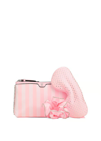 Набір для мандрівок Victoria´s Secret. Зберігайте комфорт у дорозі з цим зручним дорожнім набором, в який входять резинка для волосся, маска для сну та косметичка для зберігання всього необхідного. Маска, резинка та косметичка прикрашені стразами. Фірмовий принт-смуги. У цю фірмову косметичку помістяться всі ваші предмети першої необхідності для макіяжу. Підходить для будь-якої косметики, повнорозмірної парфумерії, лосьйонів. Застібка – блискавка. Спереду логотип бренду. Відмінна якість. Розмір косметички: 23х14х5 см.
