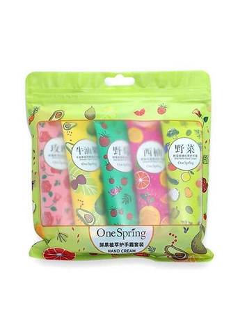 Набір складається з наступних кремів для рук: Wild herbs Hand Cream. Крем для рук із екстрактом диких овочів. Grapefruit Hand Cream. Крем для рук із екстрактом грейпфрута. Wild Berries Hand Cream. Крем для рук із екстрактом диких ягід. Avocado Hand Cream. Крем із екстрактом авокадо. Rose Hand Cream. Крем з троянди екстракт. У набір входять креми з екстрактами дикорослих овочів, грейпфрута, лісових ягід, авокадо та троянди. Крем із дикорослими овочами зволожує шкіру та насичує вологою її глибокі шари. Робить шкіру рук гладкою та молодою. Грейпфрут – фрукт, багатий вітаміном C, калієм та іншими корисними компонентами, необхідними для харчування та зміцнення клітин шкіри. Крем для рук з екстрактом грейпфрута має легку відбілюючу та тонізуючу дію на шкіру. Крем з лісовими ягодами насичує шкіру вітамінами та мікроелементами, глибоко зволожуючи її. Крем з авокадо усуває проблеми підвищеної сухості та лущення шкіри, витончення нігтів, відновлює та зміцнює нігтьову пластину. А крем з екстрактом троянди освіжає та пом'якшує шкіру, роблячи її ніжною та м'якою! Всі креми на легкій гелевій основі швидко вбираються, не залишаючи жирної плівки. Мініатюрний формат чудово підійде для жіночої сумочки.