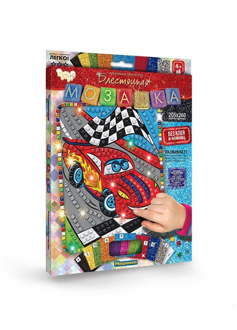 Набір для творчості "Блискуча мозаїка". Розвиває креативне мислення, творчі здібності, художній смак. Інструкція: 1) Беремо картинку і палетку з наклейками; 2) Підбираємо палетки з наклейками згідно з номерами, вказаними на коробці; 3) Відокремлюємо кубики-наклейки від палеток і клеїмо їх на зазначені номери картинки; 4) З решти наклейок оформляємо рамку до готової мозаїці. Без клею і ножиць. Розмір картинки - 20,5 х 26 см.