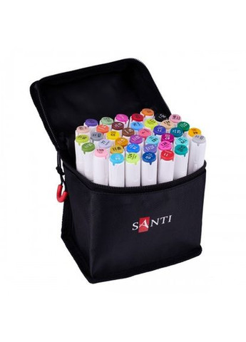 Набір спиртових маркерів ТМ SANTI - це відмінний вибір для ілюстраторів, дизайнерів, скетчерів та всіх, хто любить малювати. Підходить для роботи в техніках скетчингу, каліграфії, манги, архітектурних ескізів, розмальовки ілюстрацій та багатьох інших. У набір спиртових маркерів ТМ SANTI входять 40 маркерів яскравих, насичених відтінків. Кожен маркер оснащений двома наконечниками: з одного боку – тонкий гострий для промальовування деталей, контурів та тонких ліній, з іншого – плоский скошений для створення широких штрихів, заливки фону та виразних мазків. Для максимальної зручності кінчики ковпачків забарвлені у колір маркера, номер та назва кольору також вказані з обох боків, що значно спрощує пошук потрібного відтінку та прискорює роботу. У комплект набору також входить спеціальний аркуш для самостійного створення палітри кольорів - його можна використовувати для наочного відображення всіх відтінків і точного підбору потрібного кольору в процесі малювання. Набір упакований у сумку, яка забезпечує акуратне зберігання та зручне транспортування маркерів. Сумка виготовлена з міцного матеріалу, оснащена блискавкою-застібкою, яка надійно фіксує вміст усередині. Зручна ручка у верхній частині дозволяє легко переносити набір – у руках, у рюкзаку або у валізі. Кожен маркер розташований вертикально, що дозволяє швидко знайти потрібний колір. Спиртові маркери найкраще підходять для малювання на спеціальному щільному папері, призначеному для маркерів. Майте на увазі, що на тонкому папері чорнило може просвічувати на зворотний бік аркуша. Набір спиртових маркерів ТМ SANTI підійде як початківцям, так і досвідченим художникам, дизайнерам, скетчерам та всім, хто цінує зручність та якість. Це чудове рішення для тих, хто займається творчістю у поїздках, на навчанні, у студії чи на пленері. Основні характеристики набору спиртових маркерів ТМ SANTI: - кількість у наборі 40 шт. - двосторонні - 2 наконечники (кулеподібний та долото) - номери та назви кольорів вказані на ковпачку з двох сторін - чорнило на спиртовій основі - корпус із міцного поліпропілену - палітра для самостійного складання - зручна сумка для зберігання та транспортування Набір спиртових маркерів ТМ SANTI - колір, натхнення, зручність та комфорт у кожному штриху!