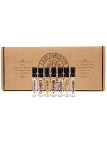 Набір пробників Captain Fawcett Eau De Parfum Exploratory Collection — міні-версії преміум ароматів Пориньте у світ ароматичної алхімії разом із Captain Fawcett Eau De Parfum Exploratory Collection — подарунковим сетом з семи мініатюр ароматів, що дозволяє протестувати всю палітру бренду перед вибором повнорозмірного флакону. Що містить Exploratory Collection і як це працює У стильній коробці — **сім тонких флаконів** по 2 мл кожен. Кожна пробірка — це повноцінний аромат з характерною нотною структурою. Наносьте аромат на шкіру, дозвольте йому «жити» своєю історією протягом кількох годин, і спостерігайте, який саме комбінований ефект він створює у вашій унікальній хімії. Формула набору ідентична до повнорозмірних версій ароматів бренду. Серед складників — спирт (Alcohol denat.), вода (Aqua), базові ароматичні компоненти як Linalool, Limonene, Coumarin, Citral тощо (для аромату Original) — ці ж компоненти часто зустрічаються в описах на сайті Captain Fawcett. Огляд ароматів у наборі (нотна піраміда і характер) Original CF 8836 — яскравий старт з бергамоту й мандарину, середина акцентує кардамоном і коріандром, база — ваніль, сандал, зелений мох. Класичний фужер, відомий як «домашній» аромат Captain. Triumphant — верхні ноти: бергамот, лайм, іланг-іланг; середні: чорна смородина, гвоздика, галбанум; база: сандал, амбра, мускус. Яскрава, але добре збалансована композиція. Booze & Baccy — Bay Rum, апельсин, бергамот на старті; серце з тютюну, ладану, бензоїну; база — ваніль і коріандр. Димно-солодкий характер, нагадує про класичні чоловічі аромати Barberism™ — лайм і апельсин у верхніх нотах, потім троянда й галбанум; база: кедр, пачулі, мускус. Відсилає до класичних барбершоп-ароматів. Alessandro Manfredini — пряний старт з розмарину й анісу, серце: зелений цикламен, база: амбра, кедр, тонка. Натхненний мінливістю італійських сезонів Nebula — бергамот і розмарин відкривають аромат, середина квіткова на фоні гваякового дерева, база: кедр, амбра, мускус. Описується як «ольфакторний гімн-рок» Maharajah — багата композиція троянд, спецій, шкіри, деревини і цитрусів. Аромат із характером, що викликає історичні асоціації. Переваги набору Можливість випробувати **сім ароматів** в одному наборі — замість купівлі дорогого флакону, ви отримуєте компактну дегустацію. Ідеально для подорожей або носіння в дорозі — міні-формат не займає багато місця. Дизайнерське оформлення — набір виглядає як стильний подарунок. Тестування ароматів на власній шкірі допомагає уникнути невдалої покупки великого флакону. Поради використання аромату та зберігання Наносьте аромат на теплі ділянки — зап’ястя, шию, за вухами — щоб він повільно розкривався. Уникайте тертя шкіри після нанесення: це може змінити баланс ароматичних нот. Пробуйте аромати по черзі з часом інтервалу, щоб не змішати запахи. Зберігайте набір у прохолодному темному місці, поза прямим сонячним світлом. Флакони вразливі до температурних перепадів.