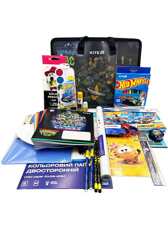 Набір канцтоварів для учня 3 класу 31 предмет b25-3-31 – чудова знахідка для школярів. Вміст комплекту відповідає актуальним потребам і містить базовий набір канцелярського приладдя для 4 класу. Склад набору: Папка-портфель на блискавці, 1 відділ., A4, NT Папір кольор. двостор. (12арк/12кол), А4 Kite Classic Зошит для малювання, 12 арк., скоба, софт тач + УФ лак, DC Зошит 18 арк., лін., гібр. лак + УФ лак, NT Зошит 18 арк., кл., гібр. лак + УФ лак, HW Гумка фігурна Emotions, асорті Ножиці дитячі з гум. вставками, малюнок на лезах, 13см HW Клей-олівець PVP, 8 г з індикатором Kite Dogs Лінійка пластикова, 15см HW Олівець графітний з гумкою DC, 36шт., туба Олівці кольорові, 12 шт. Kite Dogs Фарби акварельні, 12 кол. HW Набір із 3-х пензлів поні круглий 2, 4, 6 Kite Classic Набір для ліплення(дощ.180х250 мм+ 3 стеки),син.Kite Classic Палітра для малювання, біла Фломастери, набiр 12 шт. HW Ручка кулькова TF, синя Пластилін восковий, 12 кольорів, 240 г. HW-1 Точилка з контейнером кругла HW Зошит для нот А5, 20 л, GF Плівка з клейким шаром для обгортання книг, 330х1500мм, CPP