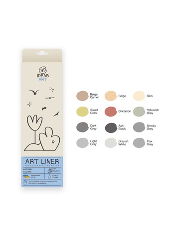 Набір кольорових лінерів на 12 кольорів Natural colors від ТМ 99IDEAS. 99IDEAS ART LINER - капілярні ручки з тонким пером 0.4 мм. Чорнило на водній основі миттєво висихає, тому не розпливається і не проступає крізь папір. Ручки тривалий час не висихають без ковпачка. Ручка-лінер підходить як для школярів та студентів, так і для професійних скетчерів та дизайнерів. Ручки ідеальні для скетчингу та письма, спільного використання з маркерами (у тому числі спиртовими) та олівцями, для деталізації готових робіт, леттерингу, графіки, декорування. Палітра складається з 72 кольорів, що дозволить створювати широкий спектр робіт та легко підбирати необхідний відтінок для реалізації вашого задуму. Кольорові лінери є не токсичні та відповідають усім основним міжнародним Європейським стандартам EN71-3 якості продукції. Кожен набір 99IDEAS ART LINER, незалежно від комплектації та кількості лінерів, має креативну, авторську обкладинку, яка відображає не лише перелік кольорів, а й передає настрій, палітру та тональність самого набору. Орієнтуючись на тему, легко вибрати саме той, що підійде для ваших робіт. Додайте яскравих кольрів у творчість разом з ART LINER від 99IDEAS!
