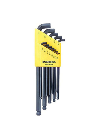 Набір шестигранних L-подібних довгих ключів Bondhus Ball End BriteGuard 9 шт Розміри: 1.5, 2, 2.5, 3, 4, 5, 6, 8, 10 ммВиготовлений із спеціально загартованої протанієвої сталіПокриття BriteGuard забезпечує чудовий захист від корозіїКульове закінчення вставляється у гвинт під кутом 25°Ball End заощаджує час за рахунок швидкого спрямування інструменту у гвинтКут 25° забезпечує природні рухи руки та зап'ястяПрацює у важкодоступних місцях
