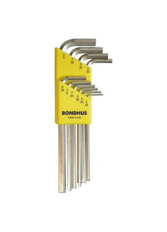 Набір шестигранних L-подібних довгих ключів Bondhus ProHold Tip Ball End ProGuard 13 шт Розміри: .050, 1/16, 5/64, 3/32, 7/64, 1/8, 9/64, 5/32, 3/16, 7/32, 1/4, 5/16, 3/8”Немагнітний наконечник ProHold щільно тримає гвинти на інструментіНадзвичайно плавне обертання без перешкод із боку кнопки ProHoldСферичний кінець вставляється у гвинт під кутом 25°ProGuard Finish забезпечує чудовий захист від корозії
