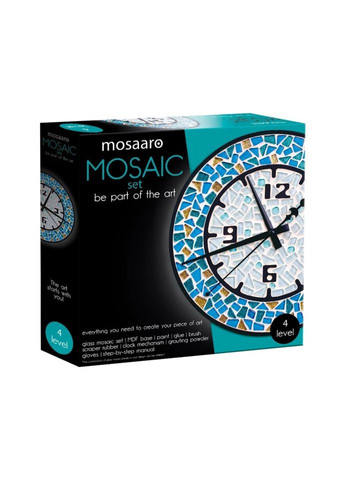 Деталі мозаїки виготовлено з переробленого скла, а основу – з МДФ. Вони приємні на дотик, зручні та безпечні в роботі. У наборі ви знайдете усе необхідне для створення шедевру, а також покрокову інструкцію з ілюстраціями. Творчий процес гарантовано принесе задоволення, а готовий виріб стане чудовим доповненням до інтер’єру. Обирайте креативні набори Mosaaro для себе або в подарунок! Набір містить: основу з МДФ, набір скляної мозаїки, клей на водній основі, акрилову фарбу, пензлик, шпатель, суміш для затирання швів, дерев’яну паличку для замішування, рукавички, губку, годинниковий механізм з кріпленням, мірну ложку, мішечок, попередження, інструкцію. Розмір основи: Ø 30 см. Розмір коробки: 316 х 316 х 64 мм. На кожній коробці є QR-код, який приведе вас на ютуб-канал Mosaaro. Там ви знайдете відео-інструкцію на кожен набір.