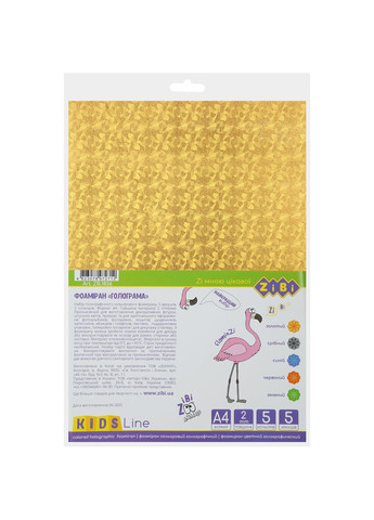 Фоаміран (фоам, EVA-матеріал) – це матеріал для декорування, який з кожним днем стає все популярнішим. Це – дрібнопористий спінений матеріал, який при тепловій оброотці чи розтягуванні «запам'ятовує» форму. Тобто за допомогою тепла рук або нагрівальних приладів (праска, фен) заготівлі з фоамірану можна надати будь-яку форму та додати фактуру. На дотик фоаміран дуже приємний, м'який, бархатистий. Фоаміран дуже добре ріжеться ножицями, також з ним можна працювати звичайним фігурним діроколом. До речі, вироби з фоамірану дуже зносостійкі – вони не бояться ні лаги, ні пилу, стійкі до атмосферних впливів та впливу хімічних речовин, нетоксичні та безпечні для довкілля. Що можна робити із фоамірану? Реалістичні декоративні квіти та квіткові композиції, бутони, ягоди, листя, а також ляльок, аплікації, елементи для скрапбукінгу та багато іншого. З нього можна робити елементи декору інтер'єру, прикраси для одягу та волосся, елементи подарункової упаковки та листівок. Фоаміран можна використовувати у вигляді плоскої основи для декупажу, для малюнку (дрібницями, пастеллю, фломастерами) та живопису (гуаш, акрил, темпера тощо). Дуже широко використовується як у хендмейді, так і у дитячій творчості. Склад набору: 5 листів, 5 різних кольорів (золото, срібло, синій, зелений, червоний) Товщина листа: 2 мм Формат: А4 Особливість: голографічний Упаковка: прозорий пакет з європідвісом та клейким клапаном