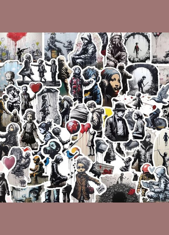 Набір Наклейок Banksy 50 шт Стікери Самоклеючі Clefers K113 на Ноутбук, Велосипед, Гітару Завдяки цьому набору стікерів ви зможете додати особливий колорит та індивідуальність своїм речам. Від класичних мотивів зображень котів до захоплюючих космічних візерунків – кожен стікер тут є втіленням якісного дизайну та вишуканості. Будь-який предмет, на якому ви вирішите застосувати ці стікери, стане особливим і виразним. Характеристики: Упаковка: 50 різноманітних стікерів. Banksy: Арт-стікери, що репрезентують стиль відомого вуличного художника Бенксі. З цим набором ви завжди зможете підкреслити свою індивідуальність та додати неповторного шарму до своїх предметів. Створіть свій унікальний стиль разом з цим набором стікерів!