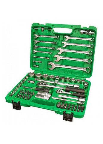 Набір професійного інструменту марки TOPTUL GCAI8201 (Тайвань). Набір складається з 82 одиниць інструменту, торцеві головки мають 6 граней для зручності відгвинчування гайок, що "прикипіли". Відмінною особливістю набору TOPTUL GCAI8201 є наявність у комплекті комбінованих (ріжково-накидних) ключів до 22мм. На одному кінці тіла такого ключа розташована ріжкова, а на іншому - накидна (12-гранна) головка. Обидві головки даних ключів мають однаковий розмір. Приєднувальний квадрат тріскачок і комірів: 1/4" та 1/2". Всі розміри інструменту в наборі – метричні, кейс виготовлений із міцного пластику. Також є можливість придбання БУДЬ-ЯКОГО інструменту з набору TOPTUL GCAI8201 окремо. На всі торцеві головки та ключі TOPTUL з набору надається довічна гарантія на заводський шлюб! Кількість інструментів у наборі: 82; Набір ручного інструменту: набір автомобільного інструменту; Тип: Набір ручного інструменту; Тип упаковки: Пластиковий кейс; Кількість одиниць, : 82; Комплектація, : Вороток; Приєднувальний квадрат, : 1/4", 1/2";
