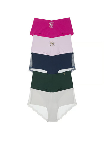 Набір безшовні трусики Victoria´s Secret чіки. Набір з 5 трусиків. Приємні до тіла, невагомі та дуже комфортні. Деякі трусики доповнені блискучим логотипом бренду. Не видно під одягом, що облягає, ідеально для заняття спортом зберігають зовнішній вигляд після тривалого носіння. Відмінна якість.