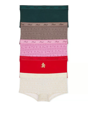 Жіночі трусики-шортики Victoria Secret Pink. Набір з 5 трусиків-шортиків різних кольорів. Базові трусики, які не сковують рухи. Приємні до тіла, зроблені з дуже зручної та якісної тканини. Еластична резинка на поясі. Логотип бренду на резинці. Відмінна якість.
