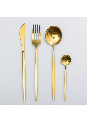 Набір столових приборів із нержавіючої сталі, 24 предмети — вишуканість у кожній деталі Цей розкішний набір столових приборів на 6 персон стане справжнім акцентом вашого сервірування. Виготовлений із високоякісної нержавіючої сталі з елегантним золотим покриттям, він поєднує у собі естетику, функціональність та довговічність. Прибори не втрачають блиску з часом і зберігають бездоганний вигляд навіть за інтенсивного використання. У комплект входить 24 предмети: по 6 столових ножів, виделок, ложок та чайних ложечок — все, що потрібно для щоденного використання або святкових обідів. Ергономічні ручки приємно лежать у руці, забезпечуючи комфорт під час трапези. Набір доповнюється стильною підставкою у формі яйця, яка не лише зручно організовує зберігання, але й надає інтер’єру витонченості. Постачається в міцному кейсі, що ідеально підходить як для зберігання, так і для подарунка. Переваги: Виготовлений з нержавіючої сталі — довговічність та зносостійкість Золоте покриття — естетика та благородний вигляд Підставка у комплекті — зручність і декор Кейс для зберігання — чудовий подарунковий формат Підходить для щоденного та святкового використання Характеристики: Тип: набір столових приборів Матеріал: нержавіюча сталь з золотим покриттям Кількість предметів: 24 Кількість персон: 6 Комплектація: Столові ножі — 6 шт (довжина 22,5 см) Столові ложки — 6 шт (довжина 20 см) Столові вилки — 6 шт (довжина 20 см) Чайні ложки — 6 шт (довжина 13,5 см) Підставка: пластикова, висота 29 см Колір приборів: золотистий Упаковка: кейс Вага: 2,2 кг Цей набір — чудове поєднання краси, зручності й практичності. Він підкреслить вашу гостинність і стане окрасою будь-якого столу. Про бренд TS Kitchen — це бренд, що спеціалізується на виробництві високоякісного кухонного посуду та приладдя. Асортимент продукції включає сковороди, сотейники, каструлі, кришки та інші кухонні аксесуари. Завдяки поєднанню високої якості матеріалів та сучасного дизайну, продукція TS Kitchen користується популярністю серед споживачів, які цінують надійність та естетику на кухні.