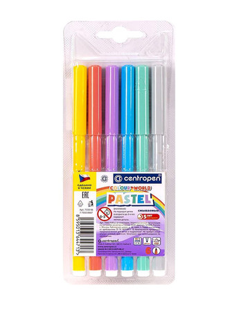 Набір фломастерів Centropen з продуманою пастельною палітрою кольорів, неодмінно сподобається вашій дитині. Фломастери легко змиваються з рук навіть холодною водою і дуже легко відпираються. Відповідно до вимог до безпеки, фломастери забезпечені вентильованими ковпачками. Корпус з поліпропілену оберігає чорнило від передчасного висихання, гарантує тривалий термін служби. Фломастери підходять як для малювання, так і для письма. Набір містить 6 фломастерів. Кругле вістря фломастера 2 мм Вік від3х років. Країна виробник: Україна.