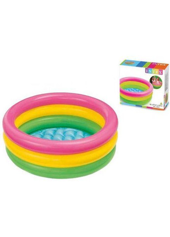 Басейн надувний Intex 56441 Веселка - це надувний басейн, для одного або декількох маленьких плавців. Такий басейн підійде для дітей від 3-х років. Його можна брати з собою на пляж, або встановити в саду. Ваші діти та їхні гості будуть в захваті від такого маленького ставка посеред вашого саду. У спекотний літній день цей басейн стане оазою для Ваших дітей.