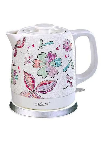 Потужність 1200 Вт Об'єм 1,5 л Матеріал корпусу Кераміка Тип нагрівального елемента Прихований Кришка Незнімна Оснащення Автоматичне вимкнення Тип Електрочайник Підставка З відсіком для кабелю Захист Від перегріву Сфера використання Для дому Колір Білий з квітковим малюнком Габарити (ВхШхГ), см 23 х 20 х 26 Вага, кг 1,3 Чайник Maestro MR-066 White Flowers поєднує в собі елегантний дизайн та високу функціональність. Потужність 1200 Вт і об'єм 1,5 л дозволяють швидко та ефективно кип'ятити воду для вашого чаю чи кави. Керамічний корпус не тільки додає чайнику розкішного вигляду, але й забезпечує його довговічність та стійкість до високих температур. Чайник оснащений прихованим нагрівальним елементом, що сприяє рівномірному нагріву води та зменшує ймовірність накипу. Незнімна кришка забезпечує зручне використання та безпеку при наливанні води. Для вашої зручності модель має автоматичне вимкнення після закипання води, що додає комфорту та запобігає перевитраті енергії. Система захисту від перегріву дозволяє використовувати чайник безпечно. Чайник Maestro MR-066 White Flowers виготовлений у стильному білому кольорі з квітковим малюнком, що додає елегантності вашій кухні. Підставка з відсіком для кабелю дозволяє зберігати чайник без зайвих дротів, забезпечуючи акуратний вигляд на робочій поверхні. Зі своїми розмірами (23 х 20 х 26 см) і вагою 1,3 кг, цей чайник стане чудовим доповненням до будь-якого інтер'єру, поєднуючи стиль і надійність.