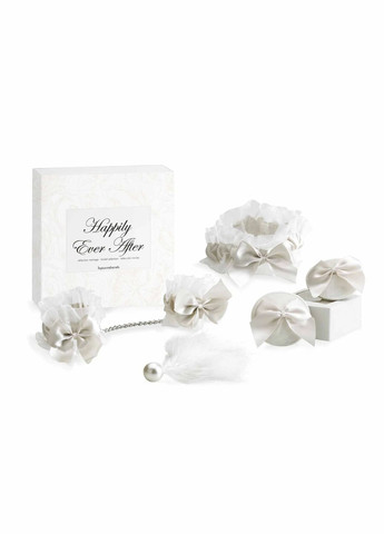 Додати у стосунки нотку новизни та естетики – ось що означає купити подарунковий набір Bijoux Indiscrets Happily Ever After! Приголомшливий сет чудово підійде як подарунок, або як набір перших еротичних аксесуарів. Атласна підвязка на ніжку, витончені наручники з ланцюжком, еротичні пестиси та лоскітка з піря – все це створено для того, аби пристрасть між вами спалахнула з новою силою! Подарунковий набір Bijoux Indiscrets Happily Ever After стане чудовим сюрпризом, а ніжно-білого кольору аксесуари внесуть у близькість "щось новеньке". Тематичні аксесуари виглядають дуже естетично і виготовлені з якісних матеріалів: атласна підвязка з бантом притягує погляд до стегон, спокушаючи та пробуджуючи солодкі фантазії; пестиси – наклейки на соски з бантиками, кокетливо прикрасять груди, створюючи одне з хвилюючих видовищ; наручники з атласною обробкою на ланцюжку дозволять закувати свою половинку в полон солодких, пристрастних відчуттів; мяка лоскітка з піря для найніжніших дотиків змусить тіло вигинатися від задоволення.