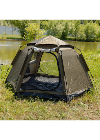 Шестикутний намет з автоматичним каркасом - відмінне рішення для комфортного відпочинку на природі, кемпінгу чи сімейних поїздок. Завдяки вбудованому механізму автоматичної установки, складання займає всього кілька хвилин і не потребує особливих зусиль. Намет легко розкладається і швидко готовий до використання, а його компактна вага робить транспортування простим і зручним. Головною особливістю моделі є кругова вентиляція 360 °: по периметру розташовані великі вікна з москітними сітками, які забезпечують відмінну циркуляцію повітря та захищають від комах. Входи також оснащені сітками, тому всередині зберігається комфортна температура навіть у спеку. Захисний тент над входом дозволяє організувати тіньову зону - ідеальне місце для відпочинку або їди на свіжому повітрі. Він надійно захищає від сонця, вітру та дощу, розширюючи функціональність намету. Шестигранна форма конструкції забезпечує не тільки більше внутрішнього простору, але й підвищену стійкість до поривів вітру. Кути розподілені рівномірно, що робить намет більш стабільним і надійним у будь-яких погодних умовах. Це особливо важливо при розміщенні кількох людей та великої кількості спорядження. Основні характеристики намету для туризму: Кількість спальних місць: 3; Зовнішній розмір намету: 240×210×130 см; Внутрішній розмір намету: 215×195×115 см; Розмір у складеному стані: 75×20×20 см; Кількість входів та вікон: 2 входи, 2 вікна; Зовнішній матеріал: оксфорд; Матеріал підлоги: оксфорд; Внутрішній матеріал намету: оксфорд; Щільність матеріалу: намет - 210D, дно - 210D; Матеріал каркасу: фібергласс, діаметр 7.9 мм; Форма: шестикутна напівсфера; Система розкладання: автоматична; Сезонність: літо; Наявність чохла: є; Наявність кишені: є; Комплектація: намет, 13 ґрунтових кілочків, 8 шнурів, 2 стійки. Інструкція з експлуатації автоматичного намету Етапи встановлення намету: Витягніть ґрунтові кілочки і зніміть вітрозахисні шнури. Знайдіть перпендикулярні дуги, потягніть обома руками вгору та закрийте каркас. Складіть верхню частину каркасу Знайдіть місця з'єднання елементів дуги, роз'єднайте їх та по черзі складіть у напрямку до центру. Рівно складіть кути намету по швах і зафіксуйте його ременем. Це необхідно, щоб на матеріалі не з'являлися заломи. Складіть намет та аксесуари в упаковку. Зверніть увагу Перевіряйте цілісність тенту намету та елементів конструкції перед кожним використанням для забезпечення власної безпеки. Встановлюйте намет на рівній ділянці без каміння, гілок і гострих предметів, які можуть пошкодити тканину. Встановлюйте тент намет на безпечній відстані від багаття. Для того, щоб уникнути дискомфорту під час сну, для встановлення обирайте максимально плоску ділянку, вкриту травою або піском. Якщо місцевість горбиста, лягайте ногами вниз по схилу. Якщо під час кемпінгу збирається дощ, викопайте дренажну канаву навколо намету для відведення води. Канава має розташовуватися максимально близько до зовнішнього краю намету. Для додаткового вологозахисту використовуйте футпринт. Догляд за наметом Очищення намету від забруднень після використання - важливий аспект, який безпосередньо впливає на термін і якість його служби. Щоб зберегти спорядження: Ретельно очистіть дно і нижню частину намету від піску і забруднень. Щоб уникнути появи цвілі, не складайте намет до повн