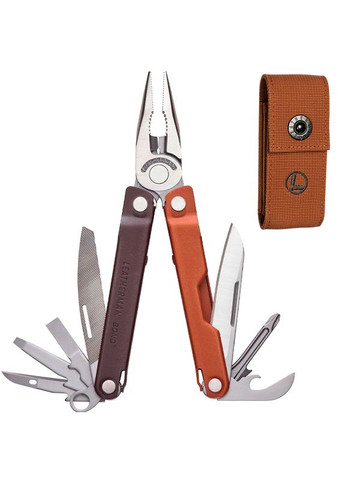 Мультитул Leatherman Burnt Sienna 833307 - це елегантний і функціональний мультитул, який поєднує в собі надійність класичного інструмента зі стильним і виразним дизайном. Руків’я виконані в ефектному відтінку Burnt Sienna (обпалена охра), що надає інструменту унікального характеру та робить його не лише корисним, а й естетично привабливим аксесуаром. Основні Кількість функцій: 14 Матеріал клинка: Нержавіюча сталь 420НС Матеріал рукояті: нержавіюча сталь Довжина клинка, мм: 66 Довжина в складеному виді, мм: 100 Комплектація: Мультитул, гарантійний талон, чохол Гарантія: 25 Інструменти 1: Плоскогубці 2: Острогубці 3: Кусачки для твердого дроту 4: Кусачки для звичайного дроту 5: Інструмент для зачистки дротів 6: Клинок прямий (сталь 420HC) 7: Шило 8: Відкривачка для пляшок 9: Відкривачка для консерв 10: Напилок по дереву / металу 11: Викрутка Філіпс 12: Викрутка середнього розміру 13: Маленька викрутка 14: Лінійка (4 дюйми | 10 см)