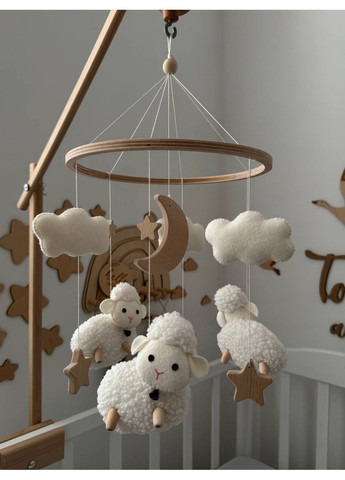 Мобіль на ліжечко створює затишок і допомагає малюку спокійно засинати. М’які іграшки у вигляді овечок, хмаринок і зірочок привертають увагу дитини та стимулюють розвиток зору й концентрації. Виготовлений з безпечних матеріалів: фетр, букле та натуральне дерево. Підходить як для хлопчиків, так і для дівчаток. Особливості: • Натуральне дерево — міцне й безпечне для дітей • М’які іграшки з фетру та букле — приємні на дотик • Нейтральний дизайн, що пасує до будь-якого інтер’єру • Легка установка на ліжечко Матеріали: фетр, букле, натуральне дерево Вік дитини: від народження