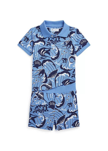 Дитячий комплект Polo Ralph Lauren. Стильний комплект, що складається з футболки поло та шортиків з принтом. Футболка поло - фірмова вишивка "Поні" на лівій стороні грудей, ребристий комір поло, планка на двох ґудзиках, короткі рукави з ребристими нарукавниками, рівний розріз по низу. Низ шортики з гумкою на поясі, штучною ширинкою, дві передні похилі кишені та накладна кишеня ззаду праворуч. Дуже м'який матеріал. Відмінна якість.