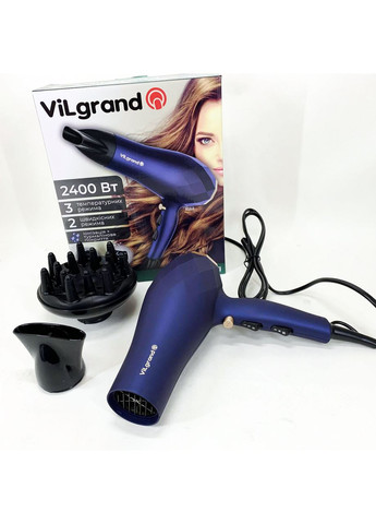 Фен ViLgrand VHD-2424TI Blue дозволяє максимально швидко висушити волосся та зробити ефектне укладання. Негативні іони, багаторазово посилені Турмаліном, нейтралізують електростатичну напругу на волоссі, зберігаючи його внутрішню вологу. Тим самим волосся стає більш слухняним і блискучим. Корпус фена ViLgrand VHD-2424TI Blue містить потужний і надійний мотор 2400 Вт, який створює потоки теплого повітря в двох швидкісних і трьох температурних режимах. Функціональність виробу також підвищується комплектною насадкою-концентратором та дифузором. Тип: Звичайний Нагрівальний елемент: металевий Функція іонізації: Є Кількість швидкостей: 2 Кількість температурних режимів: 3 Споживана потужність: 2400 Вт Насадки: Концентратор, Дифузор Особливості: Турмалінова іонізація, Подача холодного повітря, Захист від перегріву, Дифузор, Професійний мотор, Вушко для підвішування Колір: Синій Габарити в упаковці (ВхШхГ): 28,6х9,1х27,5 см Вага: 0.54кг Вага в упаковці: 0.66 кг Гарантія: 24 місяці Країна-виробник товару: Китай Країна реєстрації бренду: Україна Виробник: ViLgrand