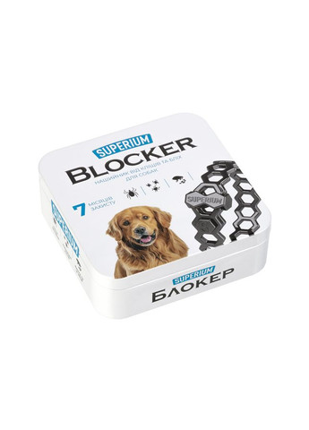 Суперперіум Блокер протипаразитарний нашийник для собак. Знищує кліщів та бліх, запобігає зараженню. Унікальна форма сприяє розподілу речовин на 30% ефективніше. Призначений для захисту від ураження та лікування захворювань собак, викликаних іксодовими та іншими паразитиформними кліщами, бліхами та їх личинками, вошами, власоїдами та при комплексній терапії блошиного дерматиту. Застосування нашийника запобігає розвитку личинок бліх у місцях перебування тварин. Має ефективну відлякувальну дію проти іксодових кліщів. Ефективність зберігається до 7 місяців. Довжина нашийника 70 см. Не використовувати собакам віком до 7 тижнів! Речовини, що діють: імідаклоприд, флуметрин, пірипроксифен. Для зовнішнього застосування. Нашийник фіксується на шиї тварини таким чином, щоб між шиєю і нашийником залишався невеликий проміжок (2 пальці) і закріплюється. За потреби зайву довжину відрізати. Переваги: • На 30% ефективніше завдяки унікальній формі • Захищає від ІКСОДОВИХ кліщів протягом 7 місяців • Ексклюзивний дизайн та якісна металева упаковка