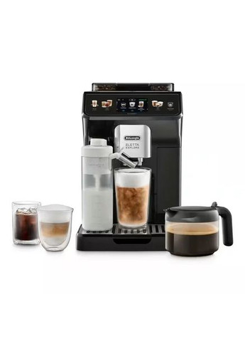 Delonghi Eletta Explore ECAM452.57.G — це сучасна автоматична кавомашина, яка дозволяє насолоджуватися як гарячими, так і холодними кавовими напоями. Завдяки унікальній системі LatteCrema Hot & Cool вона створює ідеальну молочну піну незалежно від обраного режиму.Кавомашина обладнана насосом із тиском 19 бар та вбудованою кавомолкою з металевими жорнами, що забезпечує максимальне розкриття аромату зерен. Користувач може регулювати міцність, температуру, ступінь помелу та обєм напою, створюючи каву повністю під власний смак.Модель має 3,5-дюймовий TFT-дисплей із сенсорним керуванням, що робить вибір напоїв простим і інтуїтивним. Передбачена функція To-Go дозволяє готувати каву в чашках і термокружках до 16 см, щоб брати її із собою.Delonghi Eletta Explore ECAM452.57.G підтримує автоматичні програми очищення, промивання та декальцинації, а також має знімний блок заварювання для легкого догляду. Завдяки широкому набору напоїв (від класичного еспресо та капучино до холодної кави, латте макіато та флет-вайту) ця модель стане ідеальним рішенням для справжніх поціновувачів кави. ХарактеристикиТип: автоматична кавомашинаМодель: Delonghi Eletta Explore ECAM452.57.GПотужність: 1450 ВтТиск: 19 барНапої: еспресо, американо, капучино, латте, латте макіато, флет-вайт, холодна кава, гарячий шоколад, спінене молоко та іншіСистема: LatteCrema Hot & CoolТип кави: зернова, меленаОдночасне приготування: 2 чашкиРегулювання: міцність, ступінь помелу, температура, обєм напою, обєм молока, жорсткість водиДодаткові функції: автоматичне очищення, декальцинація, попереднє змочування, енергоощадний режим, підігрів чашок, система To-Go, протикрапельна система, блокування від дітейРезервуар для води: 1,8 лМатеріал жорнів: металУправління: сенсорне, TFT-дисплей 3,5"Розміри: 26 38,5 45 смВага: 14,8 кгПризначення: для дому