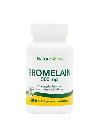 Відправка протягом 2-4 робочих днів. Natures Plus Bromelain 500 mg - харчова добавка на основі бромелайну. Бромелайн – це потужний фермент, що міститься у свіжому ананасі, що допомагає підтримувати здорове травлення. Особливості: 500 мг натурального ананасово-бромелайнового комплексу у кожній порції Підтримує здоров `я травної системи під час прийому під час їжі Покращує роботу суглобів та м `язів Підтримує здоровий кровообіг Як приймати: Приймайте по одній таблетці на день. Виробник оновлює зовнішній вигляд товару, дизайн може відрізнятись від представленого на фото. Вміст елементів у 1й порції 1 таблетка Бромелайн (300 одиниць розщеплення желатину (GDU)) 500 мг Інгредієнти Ді-кальцій фосфат, мікрокристалічна целюлоза, рослинна целюлоза, стеаринова кислота, магнію стеарат та фармацевтична глазур. Виробник: Natures Plus; Форма випуску: Таблетки; Кількість в упаковці, шт: 60; Кількість порцій, шт: 60; Зміст порції: 1 таблетка; Пол: Жіночий, Чоловічий; Вікова категорія: Дорослі; Країна виробника: США; Призначення: Для опорно-рухового апарату, Для травлення, Для серцево-судинної системи