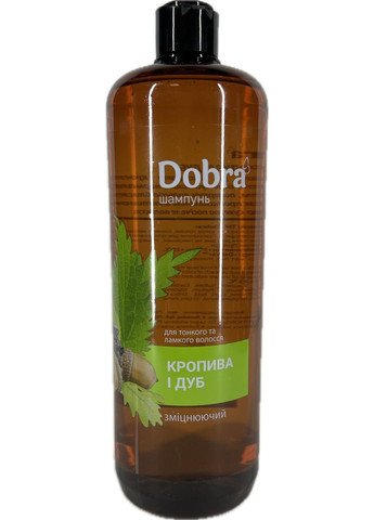 Шампунь для волосся "Крапива та Дуб". Зміцнюючий - ефективно очищає волосся, а натуральний екстракт кропиви і дуба впливає на шкіру голови, стимулюючи природні метаболічні процеси, має заспокійливі, протизапальні та антисептичні властивості, забезпечує відчуття свіжості та комфорту після миття голови.